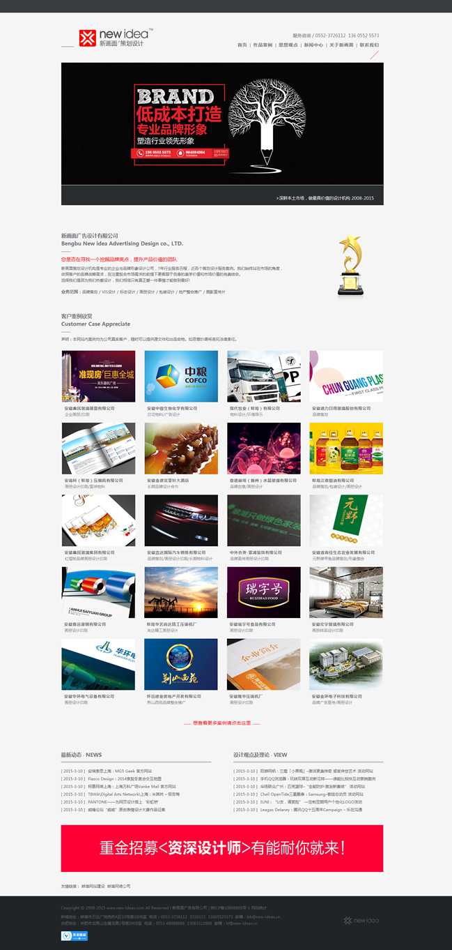新畫面策劃設(shè)計機(jī)構(gòu)是專業(yè)的企業(yè)與品牌形象設(shè)計公司,7年行業(yè)服務(wù)歷程,近百個策劃設(shè)計服務(wù)案例。我們始終站在市場的角度,